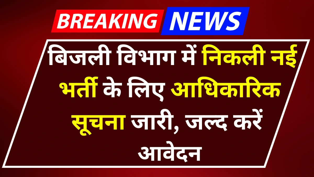 Bijli Vibhag Vacancy 2025: बिजली विभाग में निकली नई भर्ती के लिए आधिकारिक सूचना जारी, जल्द करें आवेदन