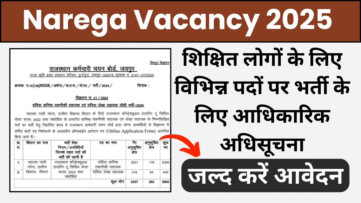 Rajasthan NREGA Vacancy: राजस्थान नरेगा भर्ती के लिए आधिकारिक सूचना जारी कर दिया गया है, और इस भर्ती…